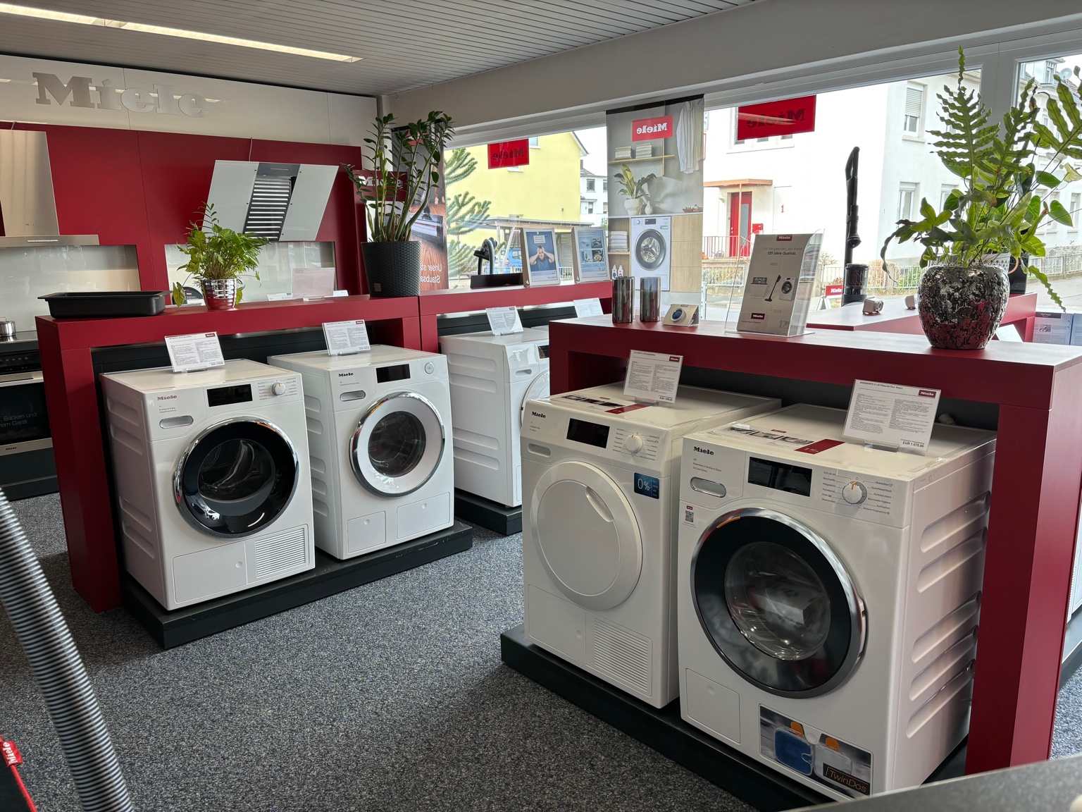 Bei uns findet ihr die neuesten Miele Geräte. Von Waschmaschinen über Trockner, Geschirrspüler und Backofen bis hin zu Bügelstation und Staubsauger. Kommt vorbei und probiert aus, was sich für euch am besten anfühlt.